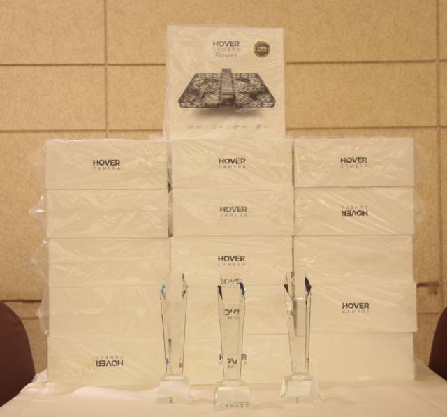 大赛奖杯及零零无限赞助的小黑侠便携无人机