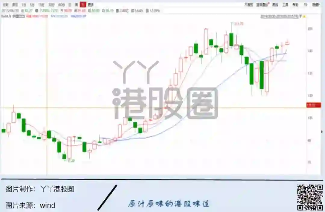 次日,阿里巴巴股价突破40港元,其后虽然步入调整,但很快便反弹。