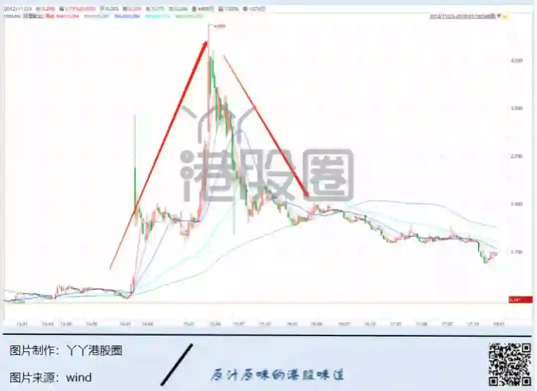 到2012年2月,股价也没什么起色,较发行价已跌超过3成,和41.8港元的历史高位,更是蒸发近8成。