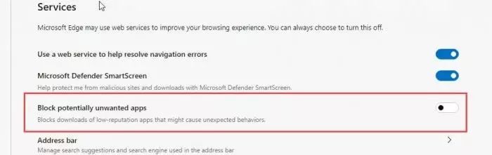 Chrome 使用 Google Safe Browsing 来保护用户免受危险网站和文件的侵扰,而基于 Chromium 的 Edge 浏览器则是使用Microsoft Defender SmartScreen,在 Edge 浏览器的服务类目中的“Privacy and services”已经默认启用。