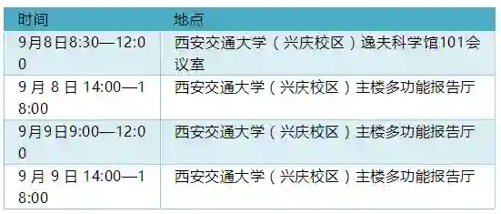 西安交通大学(兴庆校区)主楼多功能报告厅(9月8日下午和9月9日全天)