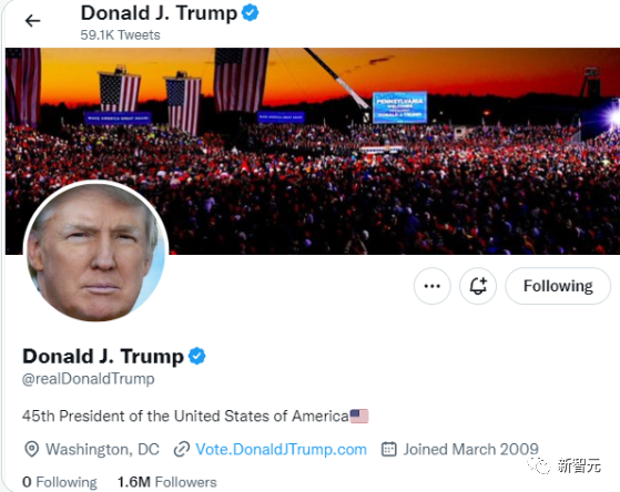 不久,特朗普的账户重新出现在twitter上,他以前的推发布的5.9万推文都还在,但粉丝数大为减少,很可能是在封号期间被清理了。