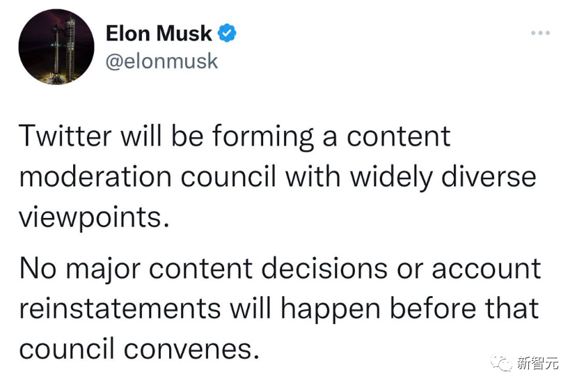 10月下旬,在他以440亿美元收购推特后,马斯克宣布他将组建一个「具有广泛不同观点的内容审核委员会」,并表示,在该小组有机会开会之前,任何被禁的人都不会被解封。