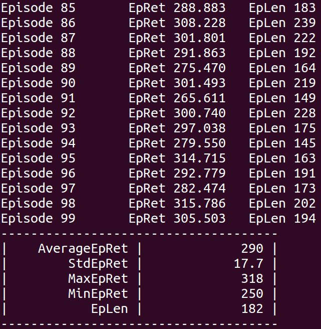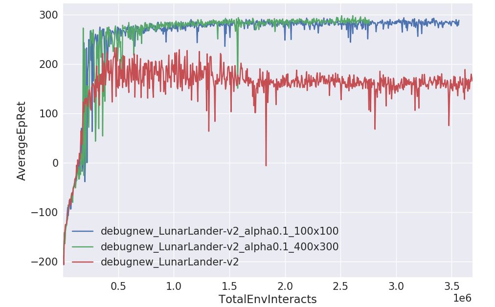 再看LunarLander-v2的效果(也是比较简单了。。。),AverageEpRet就是不上300... : (