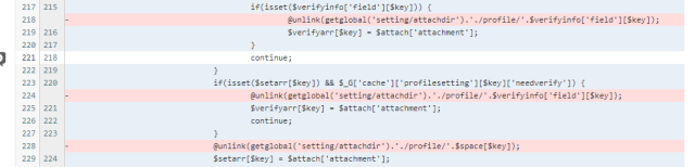 根据参考连接里的commit编辑upload/source/include/spacecp/spacecp_profile.php文件,删除和unlink相关代码。