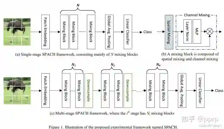 近期Transformer MLP系列模型的出现,增加了CV领域的多样性,MLP-Mixer的出现表明卷积或者注意力都不是模型性能优异的必要条件。不同架构的模型进行比较的过程中,会使用不同的正则化方法、训练技巧等,为了比较的公平性,本文提出了SPACH的统一框架,期望对几种架构进行对比,同时探究他们各自的特点。