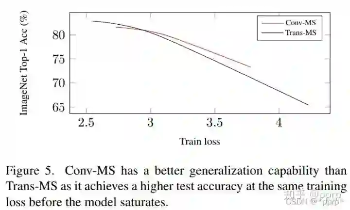 作者认为卷积具有的泛化能力更强,而Transformer具有更大的模型容量,如下图所示,在Loss比较大的情况下,整体的准确率是超过了Transformer空间的。