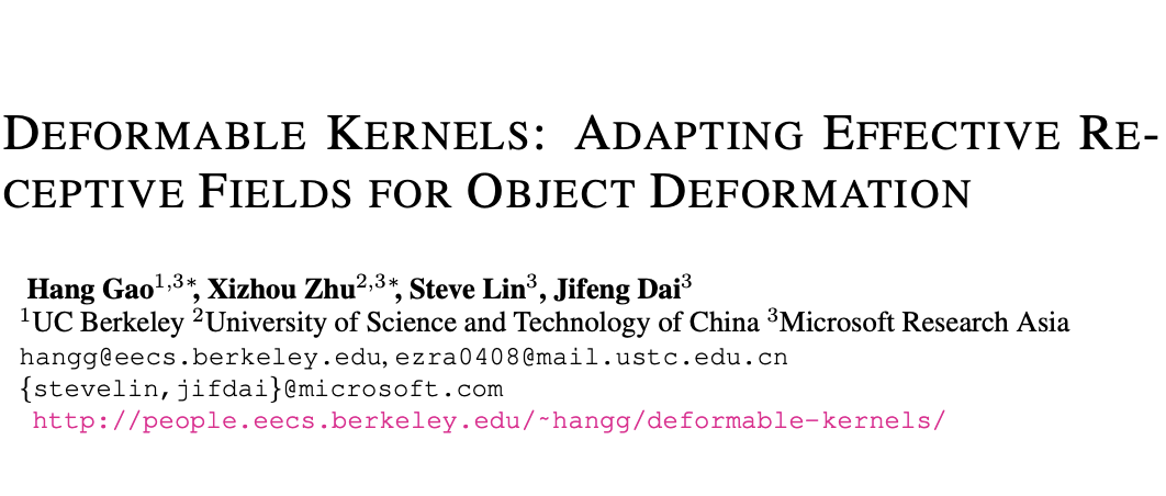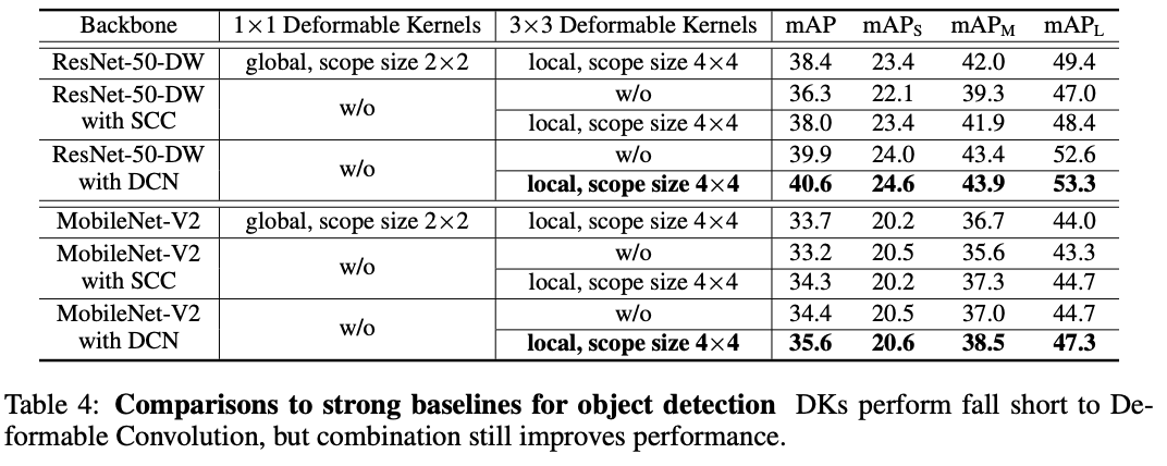 论文提出可变形卷积核(DK)来自适应有效感受域,每次进行卷积操作时都从原卷积中采样出新卷积,是一种新颖的可变形卷积的形式,从实验来看,是之前方法的一种有力的补充。