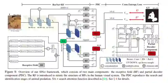 为了解决伪装目标检测问题,该研究提出了一种叫做搜索识别网络(Search Identification Network,SINet)的 COD 框架。
