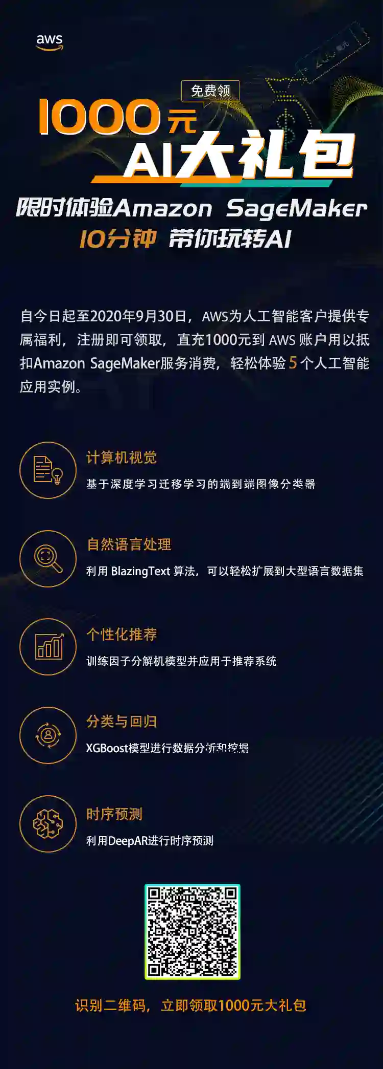 现在,企业开发者可以免费领取1000元服务抵扣券,轻松上手Amazon SageMaker,快速体验5个人工智能应用实例。