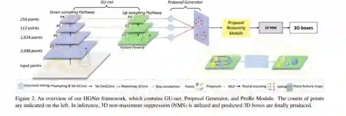 这项研究提出了一种基于图卷积 (GConv) 的新型层次图网络 (HGNet),它用于三维目标检测任务,可直接处理原始点云进而预测三维边界框。HGNet 能够有效捕获点之间的关系,并利用多级语义进行目标检测。