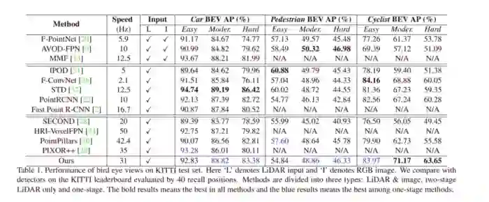 不同模型在 KITTI 数据集上获得的结果如下表所示: