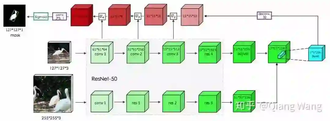 当有了上述的 motivation 之后,具体实现非常简单,只需要在 siamese 网络架构中额外增加一个 Mask 分支即可。
