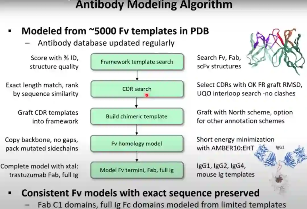 从PDB大约5000 Fv模板建模,使用 MOE 2020.0901 中的 Antibody Modeler 应用程序创建了所有数据集的抗体可变区的同源模型
