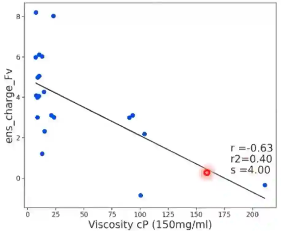 低的Fv电荷增加mAbs IgG1的粘度viscosity,ens_charge_Fv对viscosity有预测力