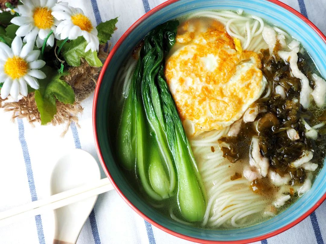细细的清汤面上放一勺这类的雪菜基底炒菜,则整碗面都下饭可口。蛋炒饭上浇一勺这类的雪菜,则你非常容易不知不觉就吃了一大碗。