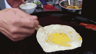 真正的合肥的鸡蛋饼,有着那种蓬松且蛋意十足的口感,外边裹着酥脆的饼壳。我们以前学校门口卖的那种蛋饼,小贩往往是当着你的面,现灌一个鸡蛋进去。并且在那稀薄的鸡蛋液上,立即洒上切碎的榨菜。饼翻面,鸡蛋和榨菜在热气腾腾的饼内形成融合。用牛皮纸包住递给你,你立刻一咬,那确是一种真空但飞腾的味道。有一段时间我们一度不流行在家里吃早饭,而是和同学约好,在校门口买这种鸡蛋饼吃,最后呼朋引伴一起笑笑闹闹走进学校。