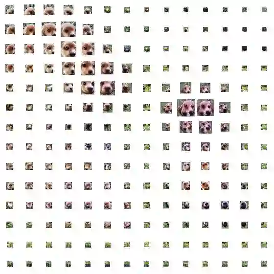 然而,这些可视化忽略了一个关键信息:激活的大小。通过按照激活向量的大小对每个单位的面积进行缩放,我们可以指出网络在该位置所检测到的特征强度: