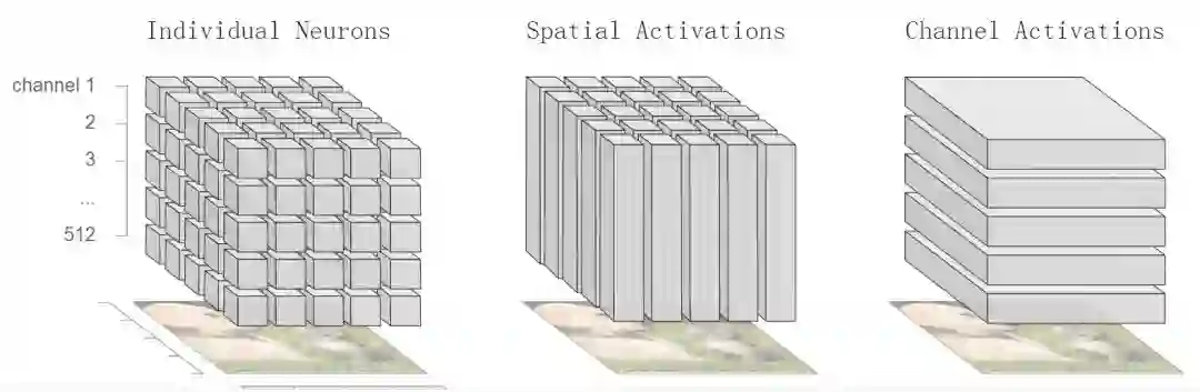 计算机视觉中神经网络每个隐藏层上所开发的的激活立方体,立方体的不同切片使得我们能够瞄准单个神经元、空间位置或信道的激活。
