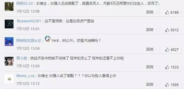 面对上述两张对爱情明码标价的表格,网友们都炸了:“我初恋他家嫌弃我属羊逼我分手,现在我未婚夫长得比他好看比他有钱,开心”,“我年薪50万,长得好看,北京主城区有房适龄,为啥不找小鲜肉谈恋爱,要嫁给你家儿子当宝妈?”……
