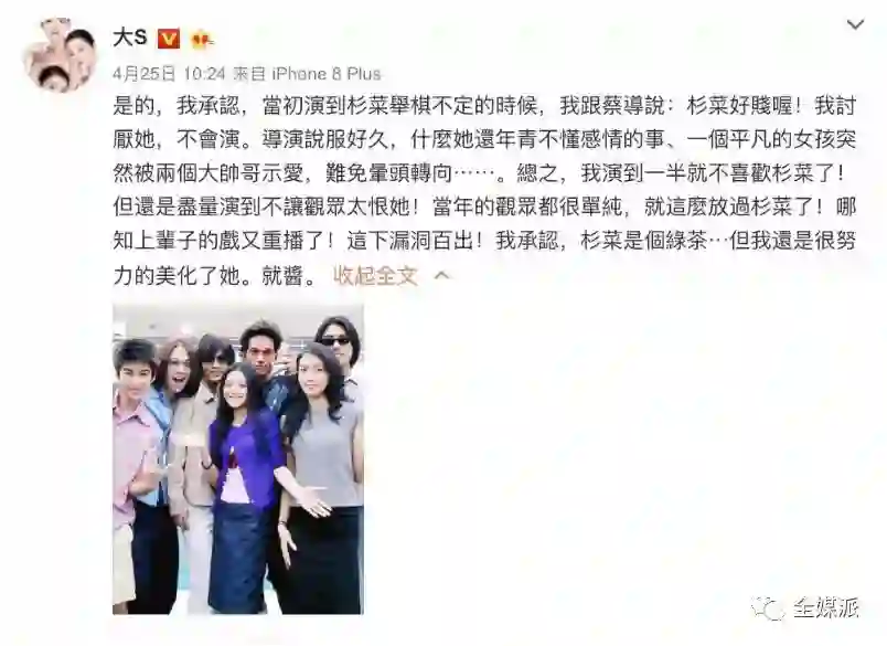 与如萍同样被称为绿茶婊的还有《流星花园》里的杉菜,而这个人设的崩塌也得到了演员本人的承认。
