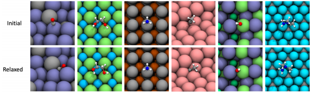 吸附物(小连接分子)和催化剂表面的初始和松弛状态示例。