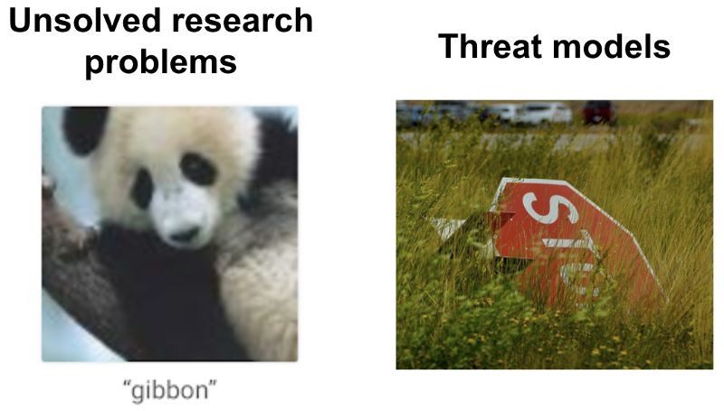 我认为对抗样本很值得研究,应该引起高度的重视。然而大多数人关注对抗样本的理由都非常片面。我认为这是因为很多人将尚未解决的研究问题与现实世界的威胁模型混为一谈。