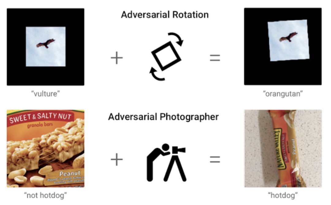 我想强调的是,制造小扰动并不是找到错误分类的样本的唯一方法。还可以用其他方法来制造错误,例如尝试随机转化和旋转图片,或者使用不同的角度或不同的光照效果。