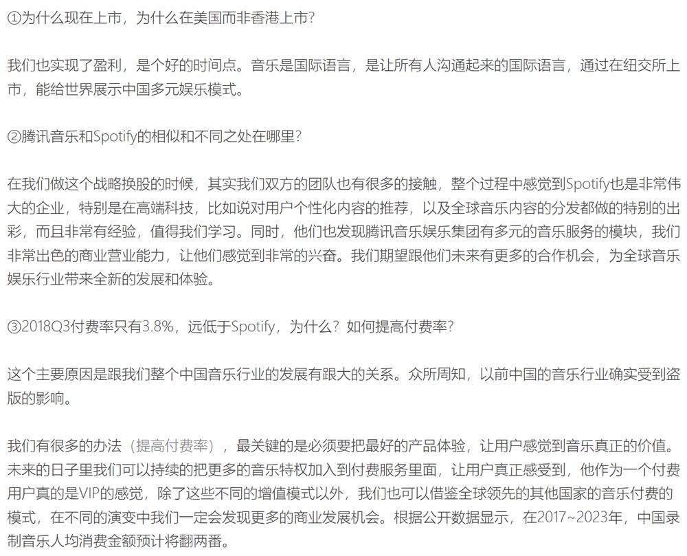 我们受邀在国内观看了敲钟仪式。仪式开始前,腾讯音娱CEO彭迦信也在美国现场连线释疑,现择要录如下: