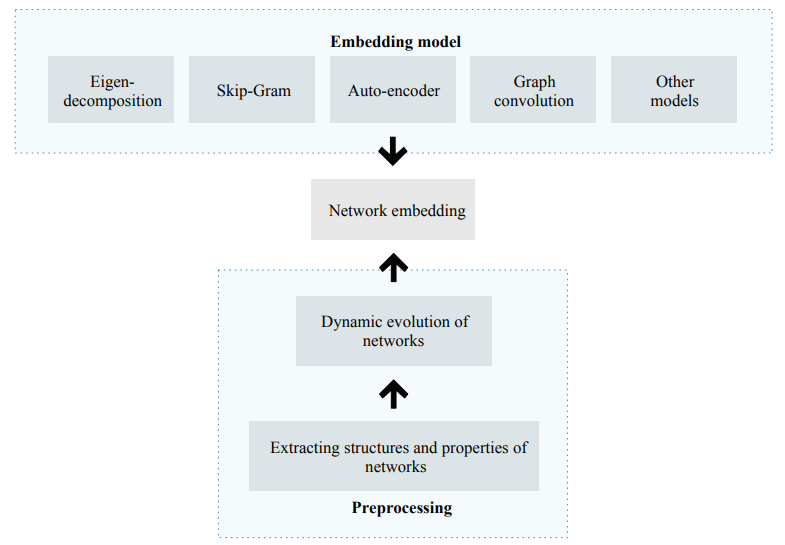 动态网络嵌入由两部分组成,分别是嵌入模型和预处理流程。