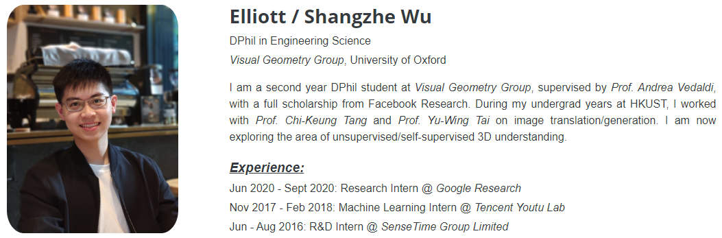 论文一作为吴尚哲(Shangzhe Wu),现为牛津大学博士二年级学生。