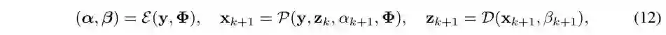 我们可以用一个嵌入的神经网络来隐式地求解公式(11)。至此,我们便完成了 x 项与 z 项的迭代求解过程。