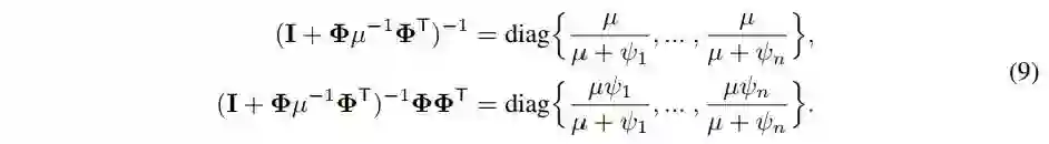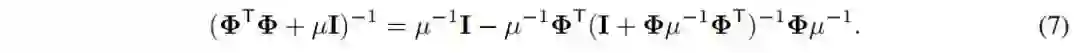 其中 I 是恒等矩阵,上述闭式解涉及到矩阵求逆,对计算机不友好。为简化矩阵求逆运算,我们做了以下推导: