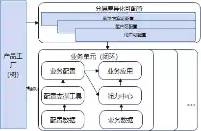 基于上诉的原子工具能力,再结合产品工厂和解决方案能力,把横向和纵向的业务配置化能力链接在一起,形成一个分层的全链路业务可配置视图。