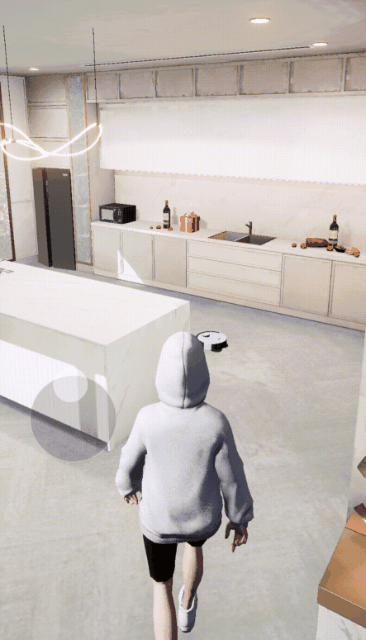 让我们再进一个空间,进入了一个厨房。随手可见各种高科技小厨电,地上还有扫地机器人在游走。
