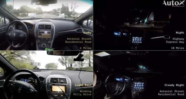 在随后的半年时间里,AutoX 获得了加州自动驾驶牌照,其无人车已经能在硅谷的车水马龙间穿梭自如。在今年三月披露的首款测试视频中,AutoX 摒弃了市面上的主流传感设备,仅依靠低成本的摄像头,实现了无人车在不同天气情况下的路面行驶。