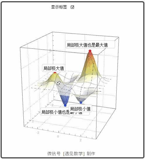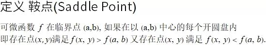 如果D(a,b) < 0, 则曲面某些方向向上, 某些方向向下, 从而会有鞍点的产生.