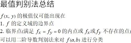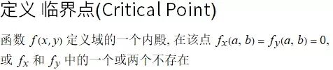 二元函数也类似这样的请看, 极值点可能出现在区域边界点或两个偏导为 0 的内点或一个或两个偏导数不存在的地方.