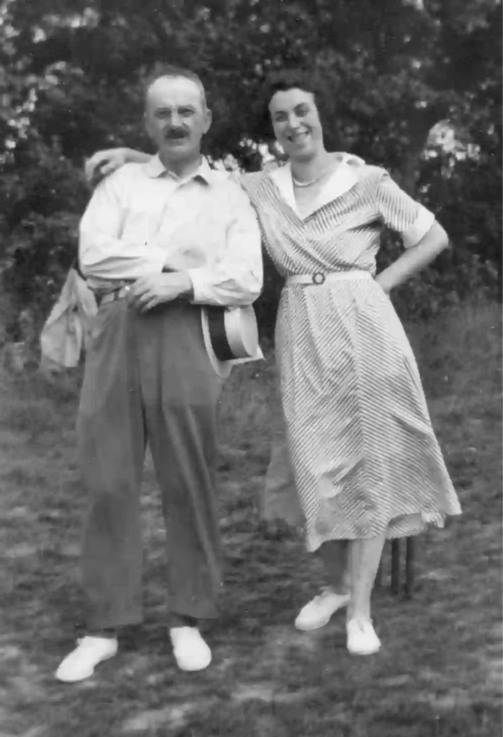 在上中学后,我有一位朋友,西里尔·琼斯,他的父母有一辆汽车。有一次,我们开车前往图德利,去看黛西姑姑,她是父亲的另一个姊妹。她和她的丈夫租种了一小块田地,但收成看上去并不好。在这之后不久,她的丈夫故去,黛西姑姑便搬过来与我们同住。她也失聪,但不是全聋,她还戴了一个非常原始的助听器。她喜欢跳舞,而我常常被她拉来当舞伴(图1.5)。像我的父亲一样,她也是一个非常乐观的人,喜欢弹奏钢琴和唱歌。