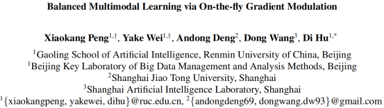 多模态学习通过理解不同类型的数据实现全面的感知和理解。因此,人们一般认为增加输入数据的模态种类可以提升多模态学习模型的性能。本文作者发现,尽管多模态模型的性能一般均超越单一模态模型的性能,但多种模态的输入数据在模型中可能并未得到充分利用。作者指出,这是由于多模态模型在优化过程中倾向于利用损失函数数值较小的模态数据进行参数更新。为解决这一问题,本文提出了一种梯度控制模块来自适应地控制不同模态数据对损失函数和参数更新的贡献率。此外,本文提出在梯度中加入额外的动态高斯噪声能够避免梯度控制可能带来的泛化能力下降问题。上述方法在不同的多模态任务上均取得了有效的验证,并且可以有效、快捷地加入到已有多模态学习模型中来。