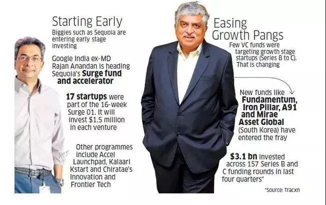 上个月,「创业印度」(Startup India) 发生了一个可喜的转折点。谷歌印度总经理拉詹•阿南丹 (Rajan Anandan) 辞职,加入红杉资本 (Sequoia Capital),负责领导该公司的早期投资项目 Surge。Anandan 是印度最高产的天使投资人之一,其投资超过 59 笔,作为印度的明星投资人,人气颇高。