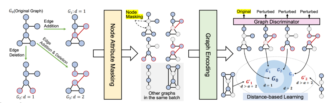 为了改进这些缺点,在本文中,作者提出了一个框架,旨在学习原始图和受干扰的图之间的精确差异,称为基于差异的自我监督学习 (D-SLA),即创建具有不同相似度的给定图的多个扰动,并训练模型来预测每个图是原始图还是被干扰的图。