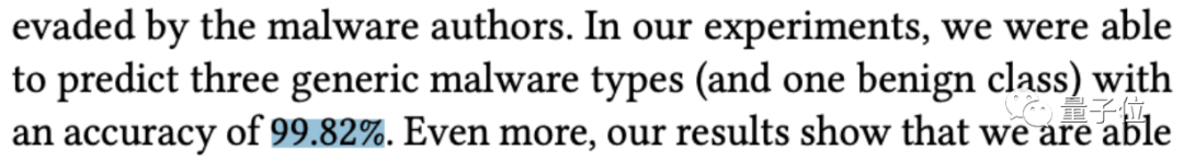 作者也在论文中提到,论文的最初目的并非检测恶意软件,而只是让AI学会给几种恶意软件做分类。至于实际检测效果还不错,只是他们的“意外发现”。