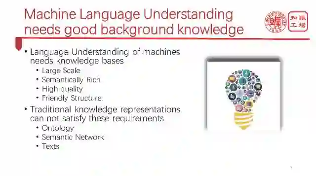 机器需要怎样的背景知识呢?第一个是要有足够大的规模,必须覆盖足够多的实体,足够多的概念。第二个是语义要足够丰富,当说到各种各样的关系的时候,机器必须都能够理解。第三个就是质量足够精良。第四个就是结构必须足够友好。
