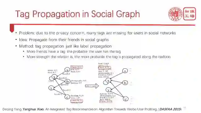 如果用户的大部分朋友都有这个标签,那么我觉得用户也可以拥有这个标签。如果用户与朋友关系非常紧密,那么朋友的标签传播过来的可能性就更大。