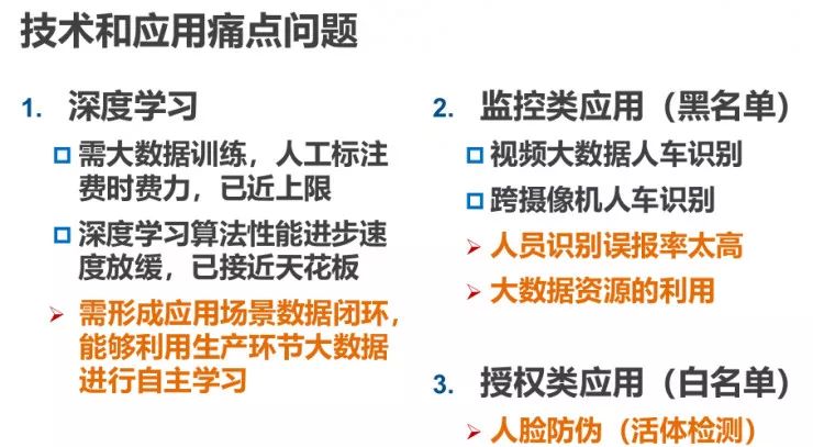 从应用来讲,刚才我说到动态识别的误报率太高,没有将大数据资源充分利用起来;核心引擎的提升需要标注数据,而数据的标注、加工需要靠人工进行。这是 AI 技术和应用的一个发展瓶颈。