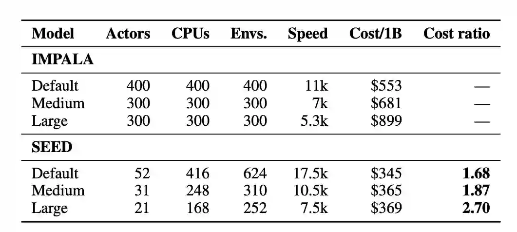 针对这些问题,谷歌在最新工作《SEED RL: Scalable and Efficient Deep-RL with Accelerated Central Inference》(