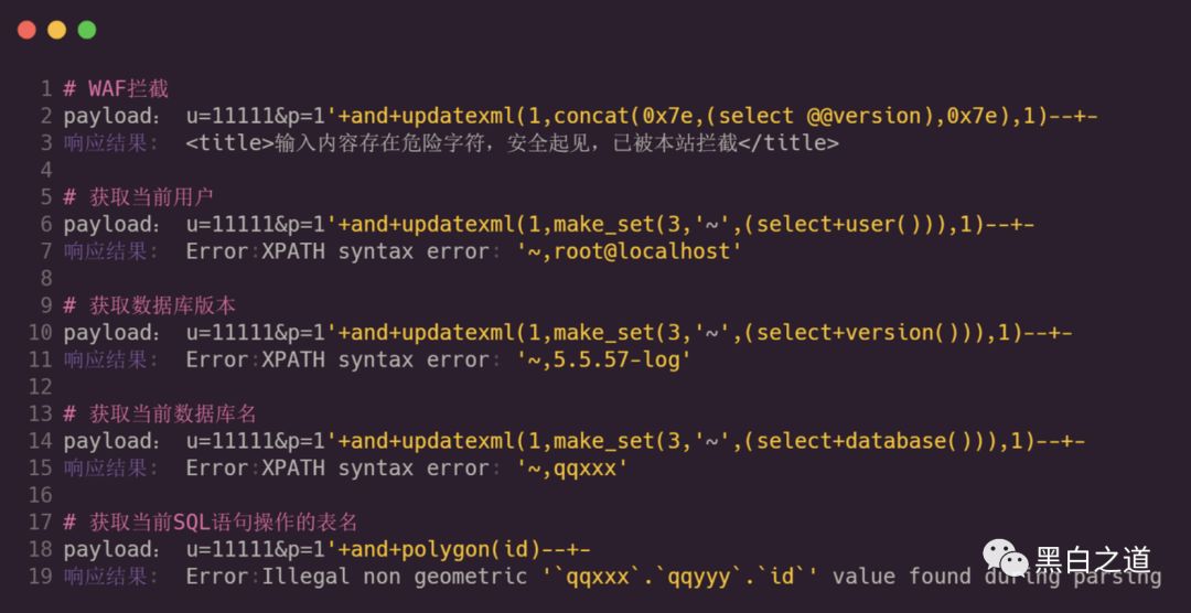 跑了半天, sqlmap 可以识别出注入的类型,但是一直注不出数据,猜测存在 WAF 干扰,后来发现是宝塔的 WAF 。于是开始手动测试,只注出了当前用户、数据库版本、当前数据库名、表名信息。