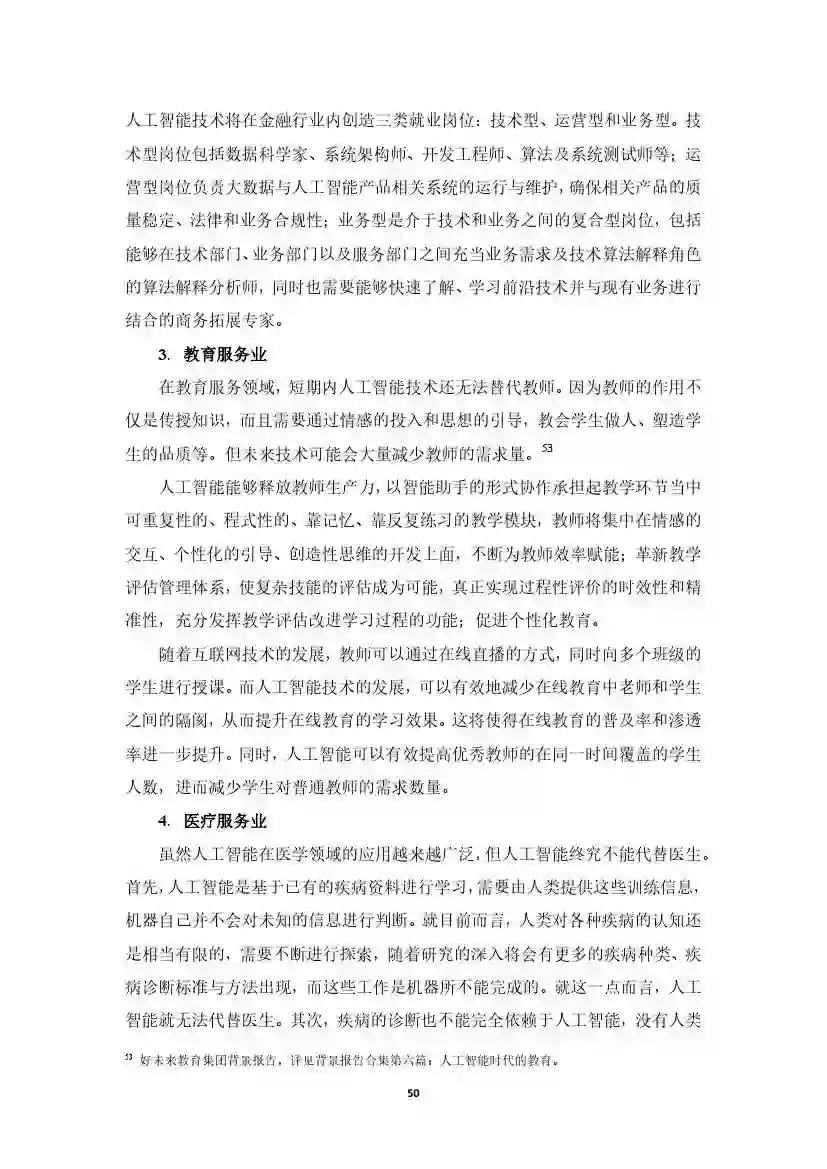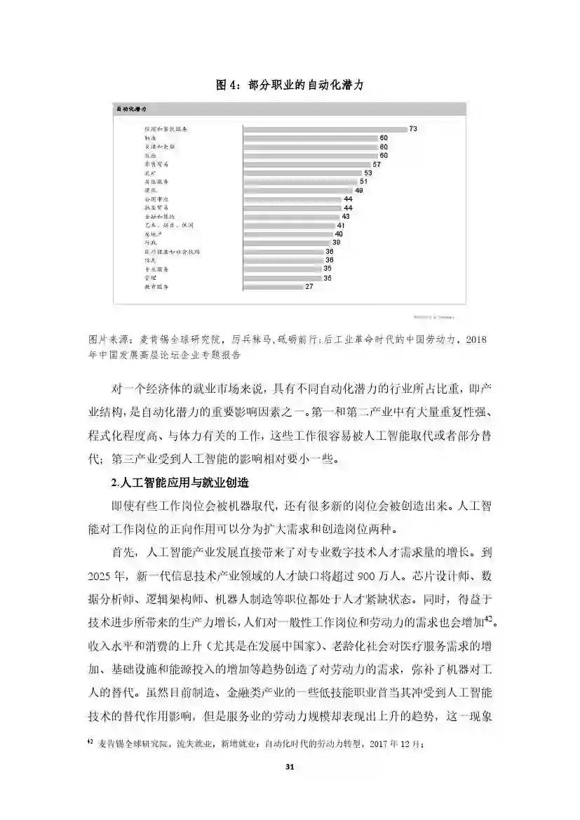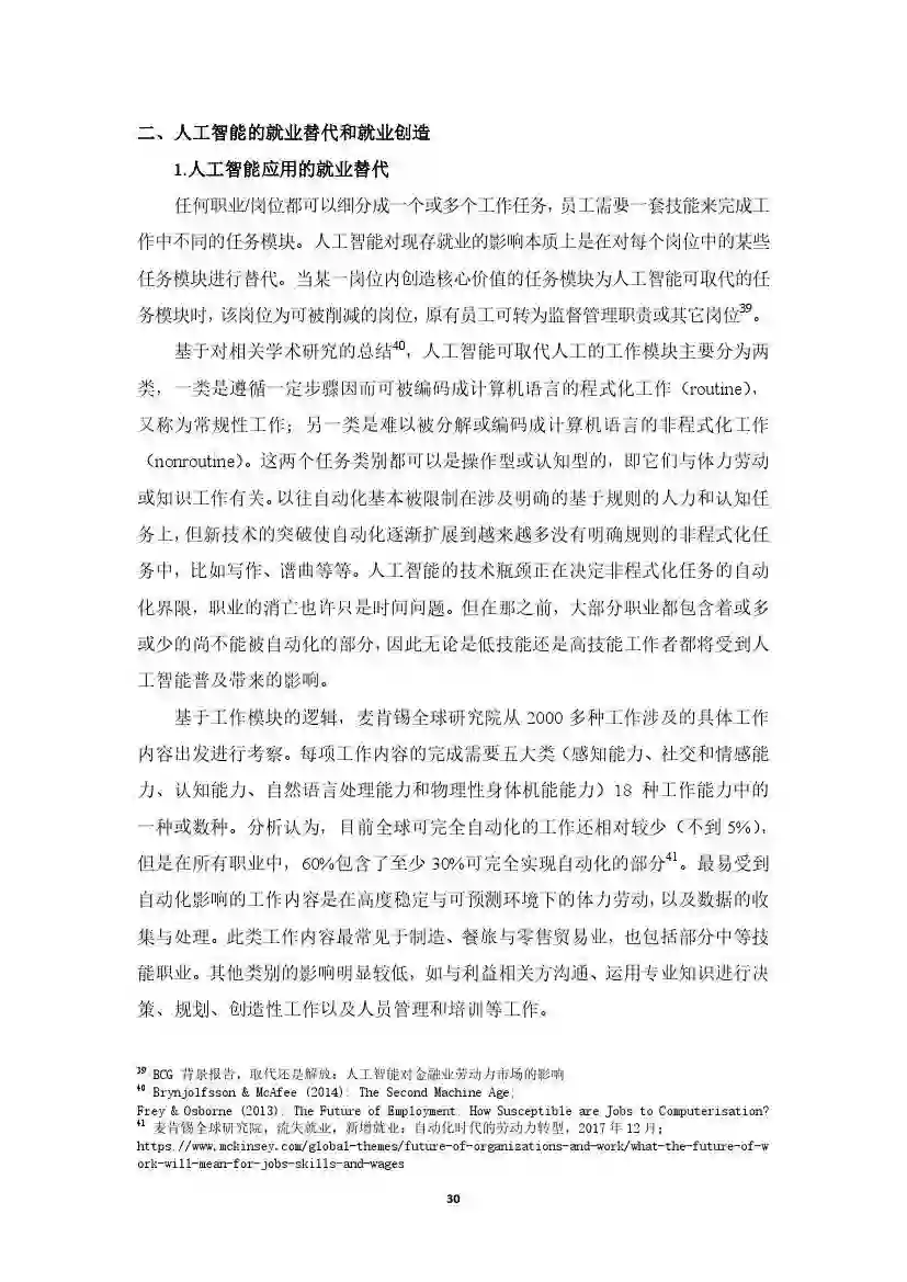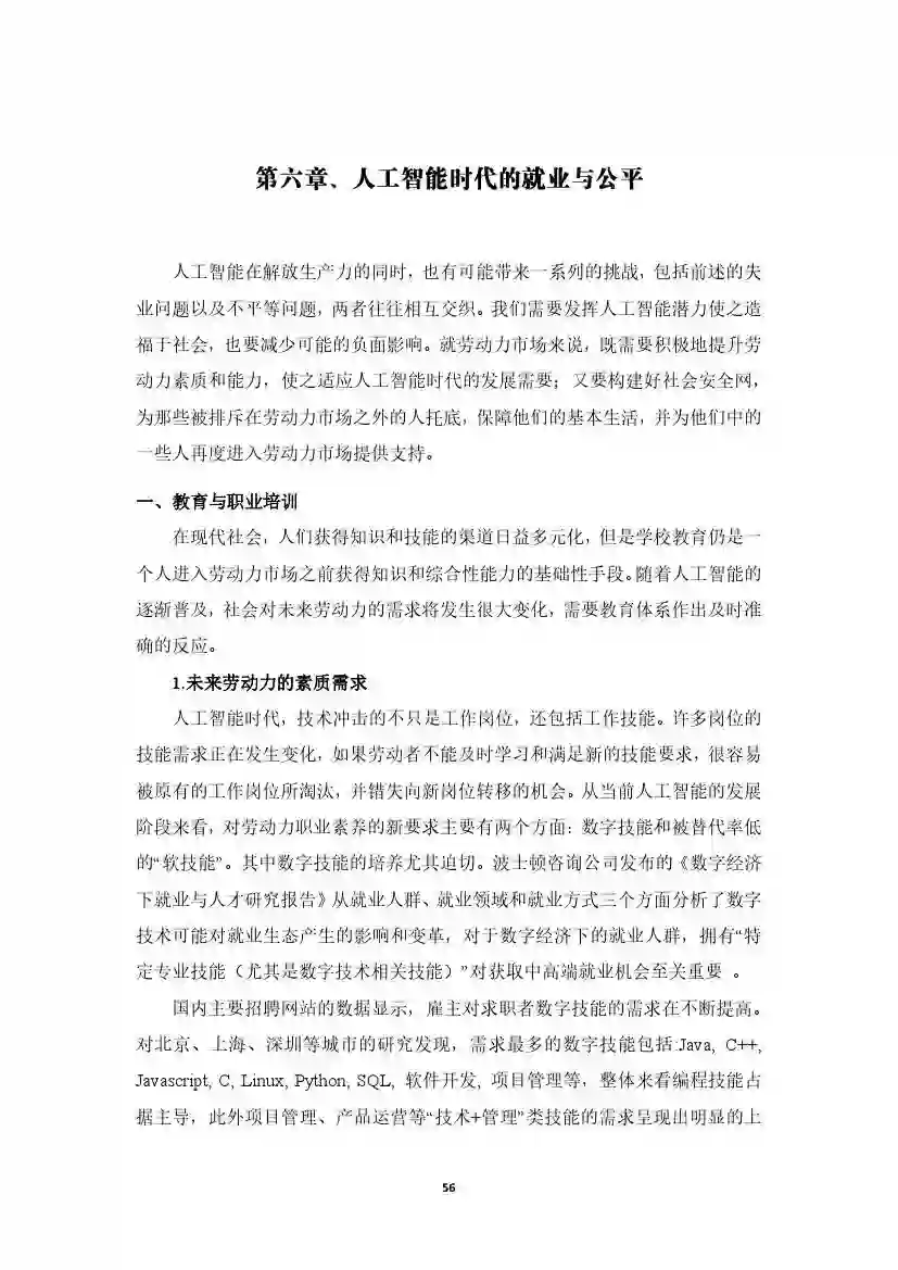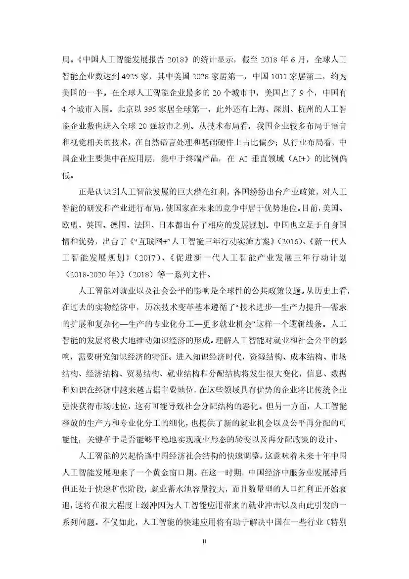 报告的后两章指出了中国发展人工智能技术在教育和社会保障方面的可能会遇到的挑战以及人工智能在我国发展应对建议。