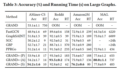 然而,GRAND 在实际应用中面临着可扩展性方面的局限性,这是因为 GRAND 在每个训练步骤中要执行多次随机传播,而随机传播过程均需要使用幂迭代(power iteration)来计算矩阵乘积,该过程的复杂度与图大小呈线性关系,因此在面临大图时,GRAND 的模型训练会变得非常慢。